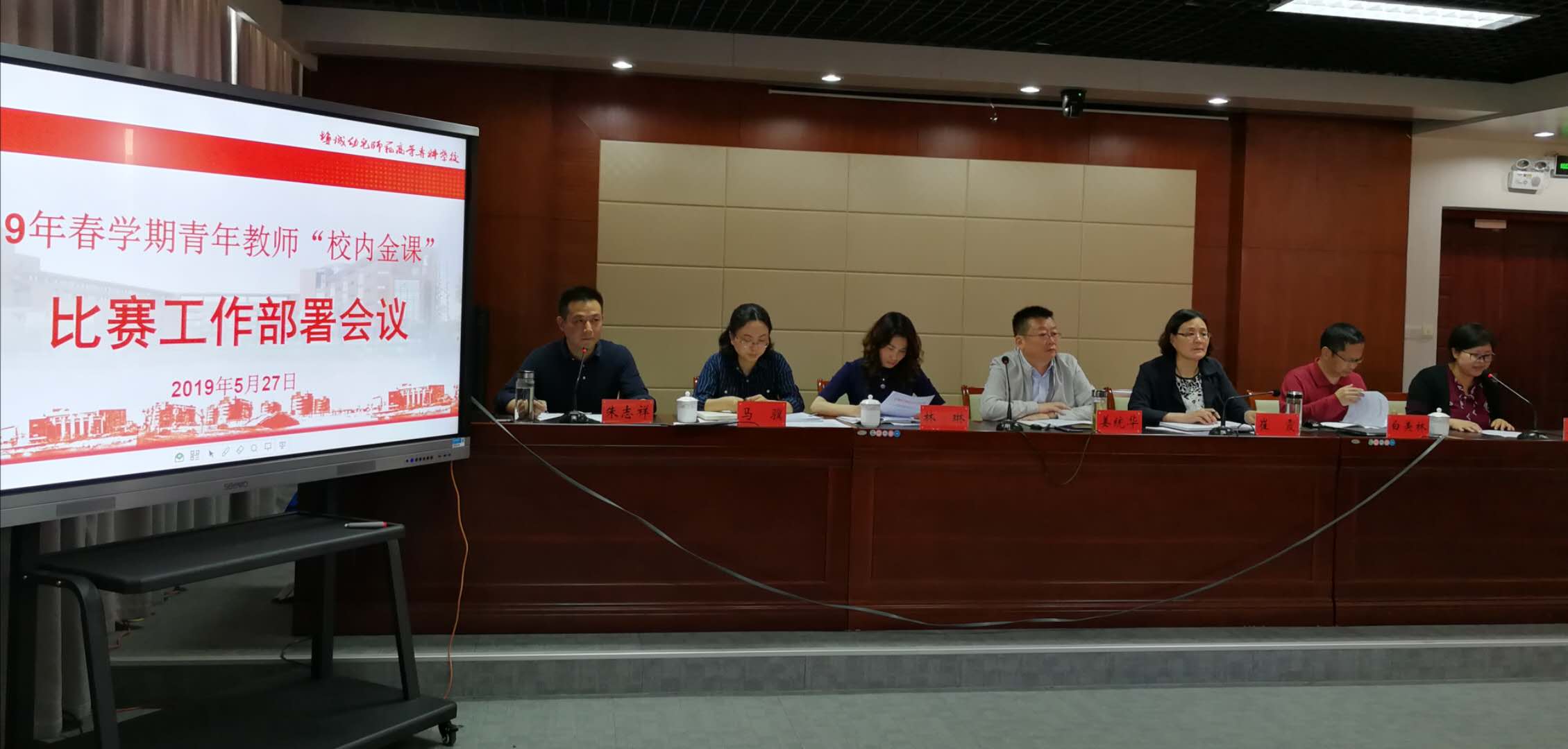 为深入贯彻落实校第一次党代会目标要求,围绕“立德树人”的根本任务,体现课程思政的综合教育理念, 5月27日下午,学校在五楼大会议室召开了2019年青年教师“校内金课”比赛工作部署会议。校长姜统华,副校长崔霞,教务处、质评中心,各二级学院教学院长、各教研室主任(组长)和参赛教师出席了会议。会议由教务处副处长朱志祥主持。