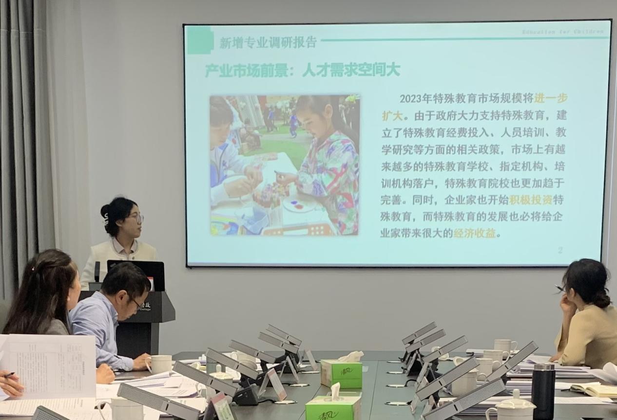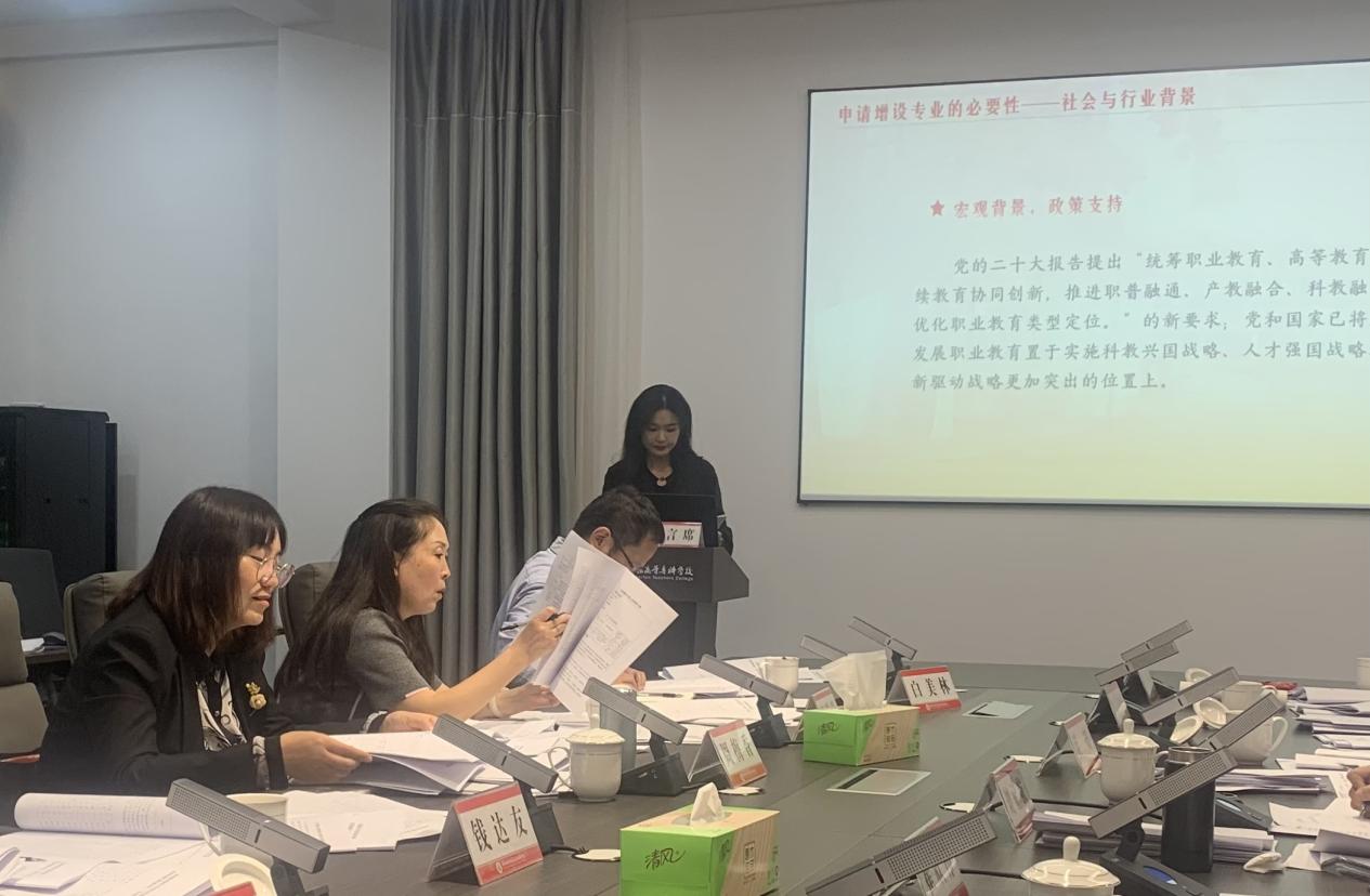 本次共有七个二级学院八个申报专业接受审议。现代家政服务与管理、特殊教育、跨境电子商务、装配式建筑工程技术、智慧旅游技术应用、体育保健与康复、舞蹈表演、音乐表演等八个拟增设专业的申报负责人分别围绕专业设置的必要性和可行性,从政策背景、产业需求、区域发展,以及专业发展规划、师资力量、办学条件、人才培养方案等方面进行了汇报。与会委员在听取汇报和审阅申报材料基础上,对八个申报专业进行充分评议,并从岗位需求、专业培养目标及特色发展定位、课程体系、实习实训、文本规范等方面对各专业申报材料提出修改完善建议。